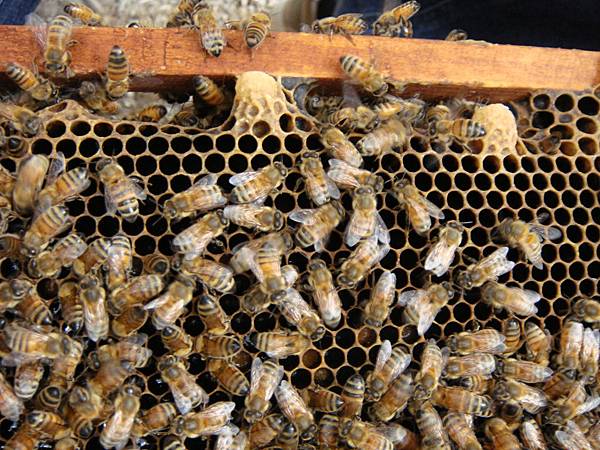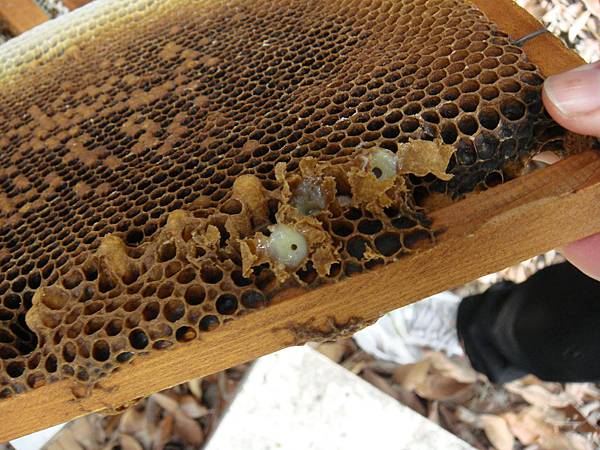 整理到第三箱時,發現王台造的很多,蜂巢內也沒看到卵。