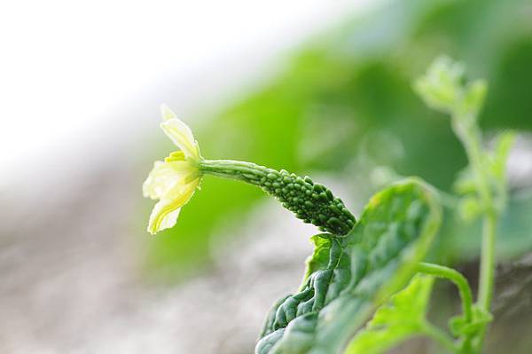 其中一些已經授粉的苦瓜花,前端都有苦瓜的果實顆粒出現了,