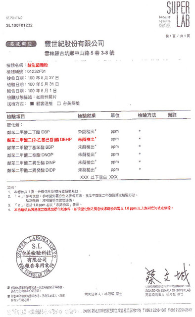 以下為樂活3+1之代工廠商-豐世紀股份有限公司所提供的益生菌檢驗報告!